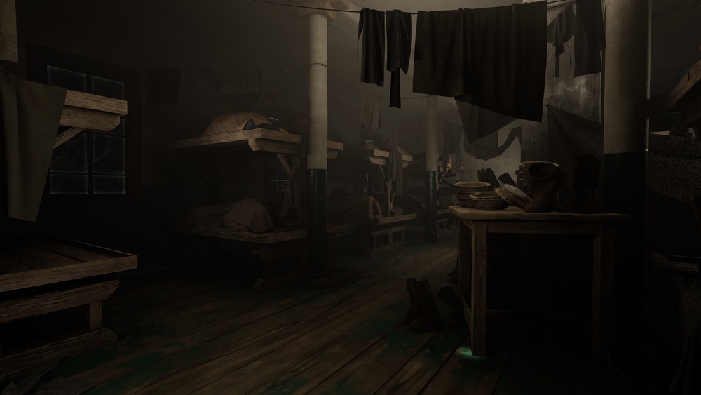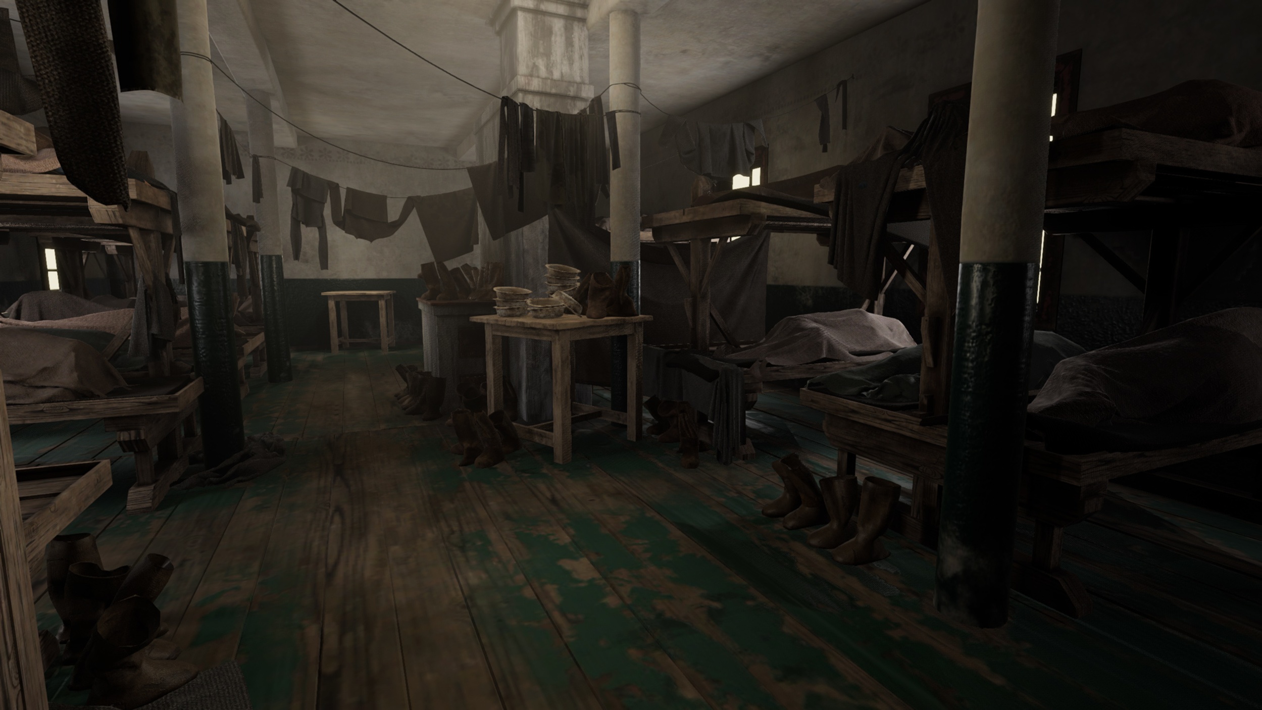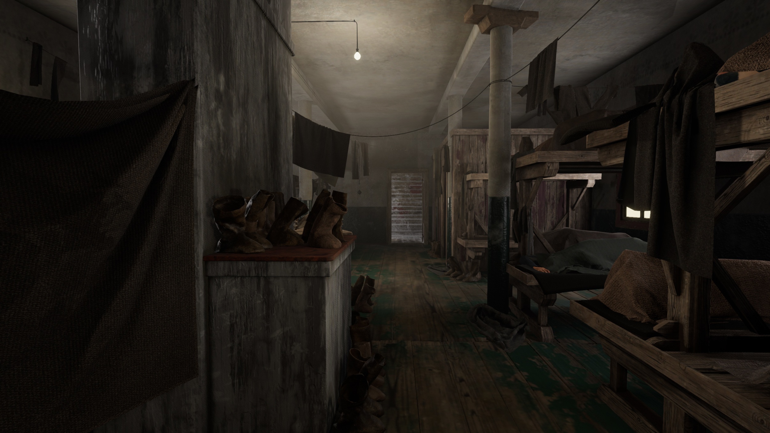 Scéna má více vrstev, které spolu tvoří obraz každodenní nelidskosti a šikany jako průvodního jevu totalitního systému. Většina informace je předávána vizuálně – hráč čte prostředí (místo u kamen, ztuhlé mrtvé tělo, sušené oblečení, rozmístění spacích míst). Při večerce není možné svobodně chodit mimo barák – hra komunikuje pocit omezenosti, stísnění. Kriminálníci se dívají přímo na hráče, nesledují ho očima, ale „drží“ ho pohledem. Gesto setření námrazy je jednoduché, ale symbolické – odhaluje realitu, která je jindy zakrytá. Přeplněnost, chlad, nedostatek hygieny. Barák je jediný prostor chráněný před mrazem, přesto zde vězni spí namačkáni na sobě, na holých pryčnách s potrhanými dekami.